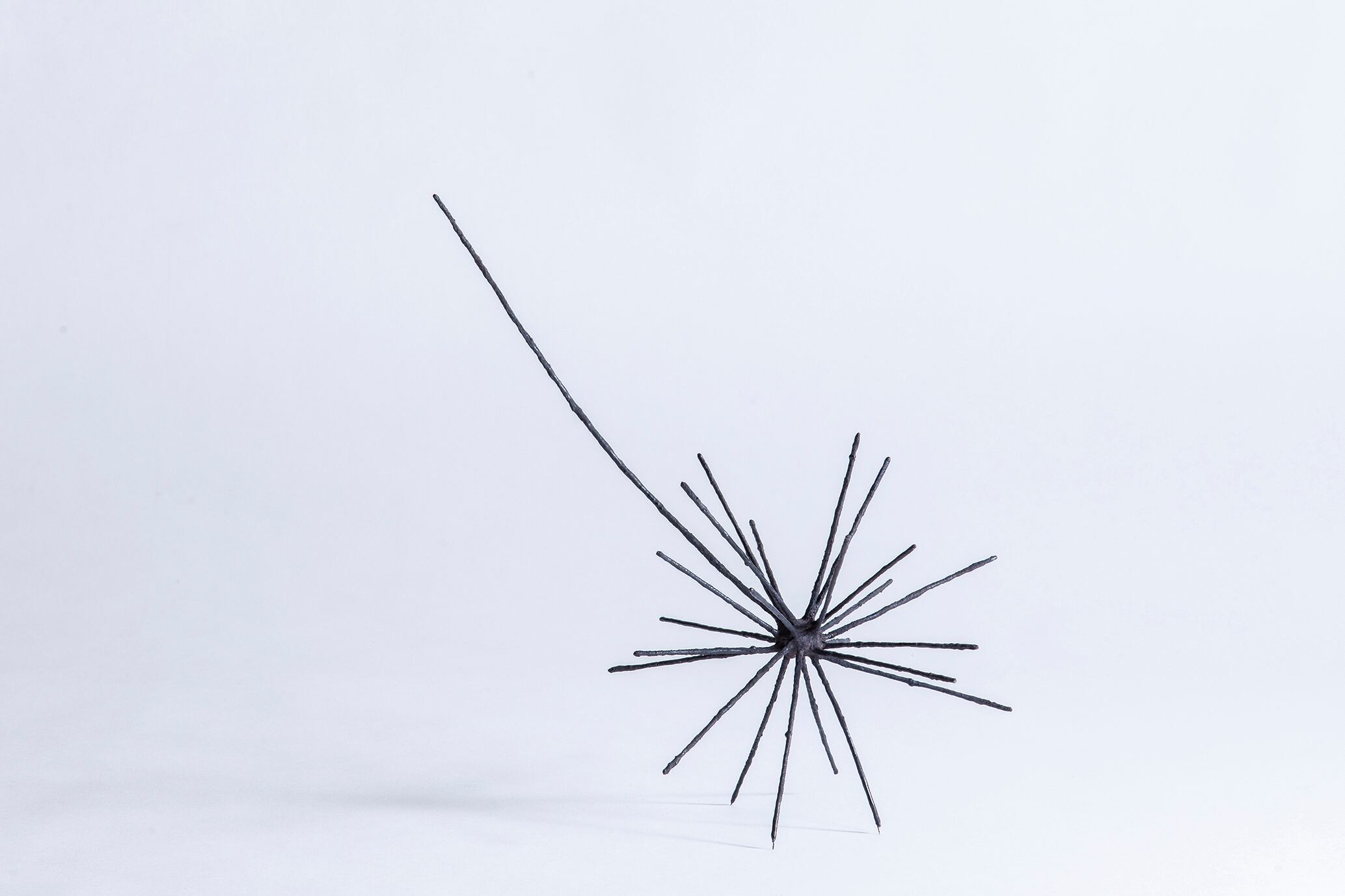 黒く、ざらっとした質感。 トゲトゲしい見た目ですが、可愛らしさもあります。 軽量のため持ち運びも容易です。 ご興味あればお気軽にお問い合わせください。 素材|ガラス、ワイヤー サイズ|H240×W400×D240(mm) 重量|2kg 金額|応相談 / ご興味ありましたらお問合せください 郵送料|梱包方法により変化します